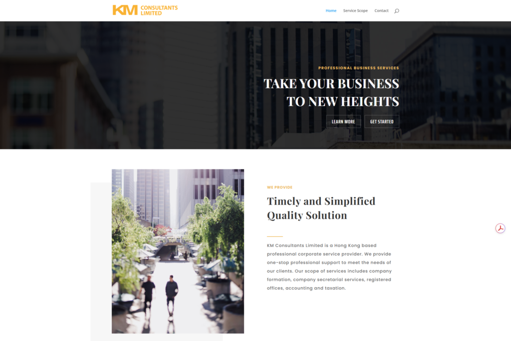 The K&M Consultants website (https://www.kmconsultants.com.hk/) serves as a textbook example of a small, three-page business website. Its design philosophy is simple and practical, aimed at delivering core information without unnecessary complexity or features.